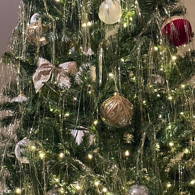 A: The tinsel icicles come in a champagne hue, adding a festive touch.