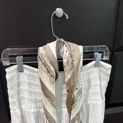 Keep your clothes organized in the closet with these 4-Pack Crystal Hangers from Brightroom™. Made of plastic, these hangers boast a crystal finish and feature side clip-ons to hang pants, skirts and other garments neatly to keep them wrinkle-free. Plus, these hangers also come with a top loop that easily attaches to the closet's horizontal rod.