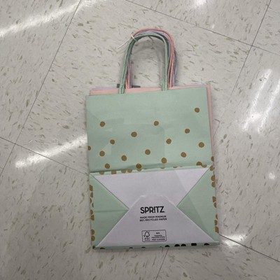 [This review was collected as part of a promotion.] These gift bags by Spr!tz are amazing! The quality is great, very thick and sturdy material. The colors are spring perfect. A light blue, a beautiful sea green, powder pink and lilac. Great for birthdays, favors, general party gifting. The size is perfect for a book, medium sized candle or boxed item. The reflective gold dots are pretty and add another level of fun to the bag. I received an incentive to write this review.