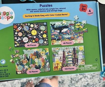 4pk Jigsaw Puzzles 48-100pcs - Gigglescape™: Kids, Ages 3+, Fantasy Theme, Problem Solving, Paperboard Material