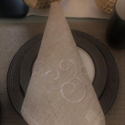 Complete your dining room look with these stylish Embroidered Design Napkins, made with linen blend for a natural look and feel. Boasting a natural tone, these versatile cloth napkins feature scroll design embroidery and pair well with a range of décor styles. Use with matching runner or tablecloth to create a coordinated design.