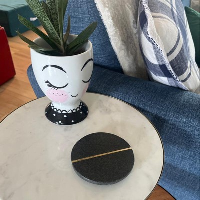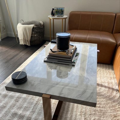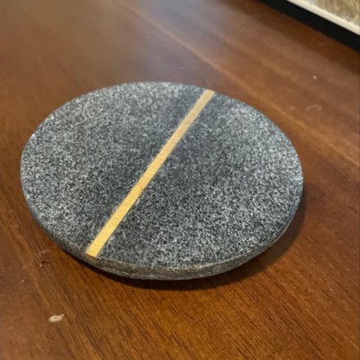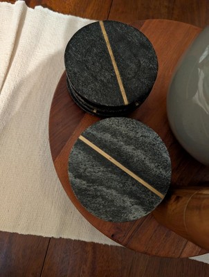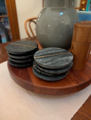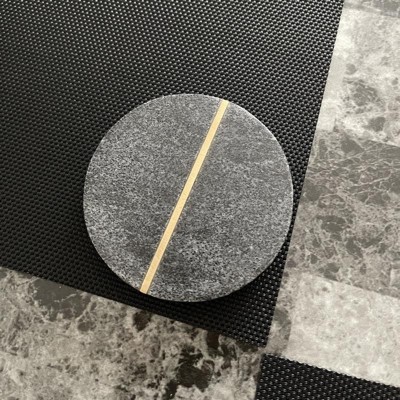 A: The coasters have a gray marble tone with a gold stripe for added flair.