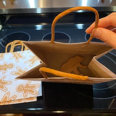 [This review was collected as part of a promotion.] These gingerbread gift bags are super cute and heavier-duty than I expected. I like that there are 2 different patterns instead of having all of the same design. They are also the perfect size for small- or medium- sized gifts. I love that they are made from recycled paper. They are very festive and perfect for holiday gift-giving.