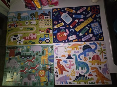 - 4pk tray puzzles with 12–24 pieces