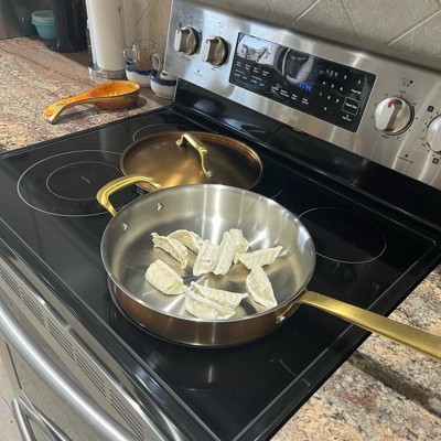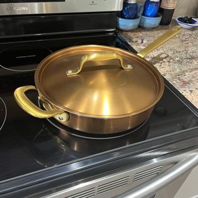 - Copper-finish frying pan