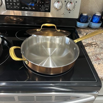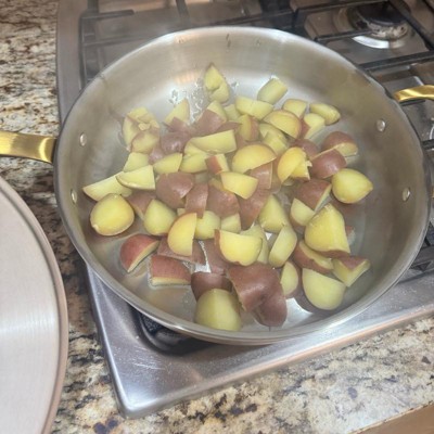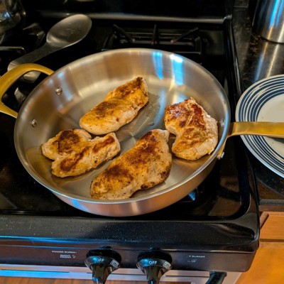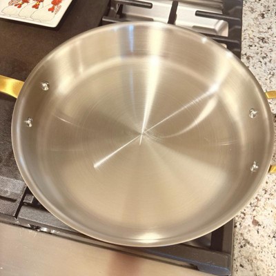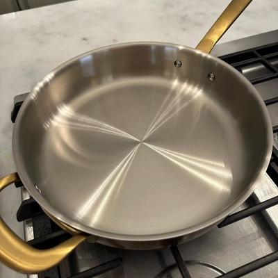 A: Hello Guest - Thank you for your interest in the 4qt 11" 2-Piece Stainless Steel Fry Pan from Hearth & Hand with Magnolia. This pan features a 3-ply, fully clad stainless steel construction. I hope this information is helpful! - Cynthia
