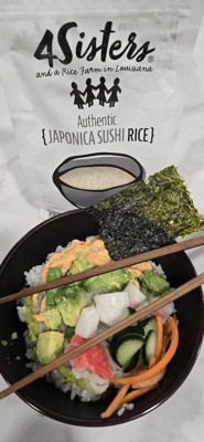 [This review was collected as part of a promotion.] While white rice would be part of my meal prep anyway, I really love the texture that 4 Sisters Sushi Rice adds to my meal. Preparation is just as simple as any rice in my rice cooker and the health benefits of choosing sushi rice over jasmine are icing on the cake. The thick plastic bag it comes in is useful if you are storing it in its original container. It is also easily resealable.