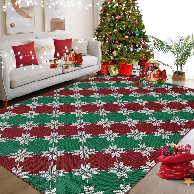 4x6 Christmas Accent Rugs, Washable Non-Slip Argyle Check Festive Carpet, Soft Low Pile Foldable Stain Resistant for Bedroom, Home, Red-Green