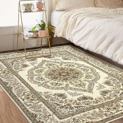 4x6 Floral Medallion Area Rug Low-Pile Printed Carpet for Indoor Home Decor in Entryway, Bedroom, Living Room, Office Kitchen Yellow