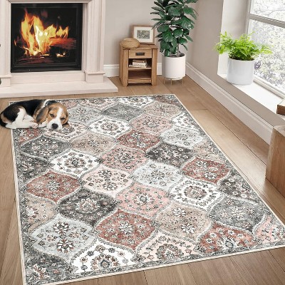 4x6 Modern Area Rug – Water-Resistant, Low-Pile, Non-Slip, Soft Dining & Living Room Carpet – Beige, Blue, Pink