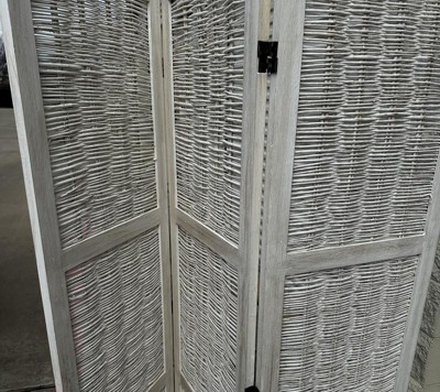 5 1/2 ft. Tall Bamboo Matchstick Woven Room Divider - Burnt White (3 Panel)