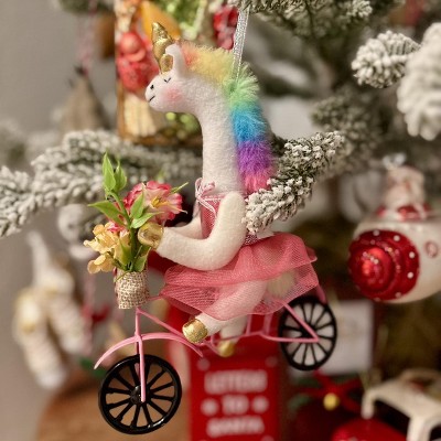 5" Christmas Fabric Unicorn with Bike Ornament - Wondershop™