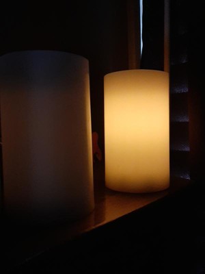 Q: Do these 5" x 3" LED Flameless Black Wick Candle White - Threshold™ glow white-ish or are they the standard yellow? Some reviews show photos that lean towards the white realm, others look yellow.
