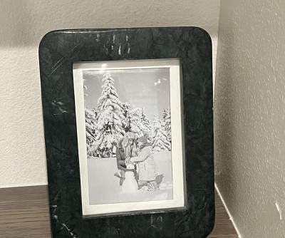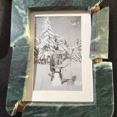 Showcase your favorite memories with the 5"x7" Marble Picture Frame from Threshold™ designed with Studio McGee. Crafted from genuine green marble, this rectangular frame adds a luxurious touch to any tabletop or shelf. Designed for vertical display, it features a sturdy easel back for easy placement and stability. Weighing 1.02 kilograms, it holds one 5 x 7-inch photo, making it perfect for highlighting cherished moments. The natural marble pattern ensures that each frame is uniquely beautiful, making it an elegant accent for both modern and classic decor.
