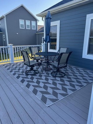 This outdoor rug has received positive feedback for its modern design, excellent quality, and great price. Guests appreciate its thickness and comfort underfoot, making it suitable for various outdoor settings. Many have noted its aesthetic appeal and ease of maintenance, while some have expressed concerns about fading and color accuracy. Overall, it serves as a stylish and functional addition to patios and decks, enhancing outdoor spaces beautifully.