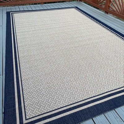 Got this rug in Navy. Absolutely love it. Using it in my kitchen/dining area. So easy to vacuum and I don't worry about any accidents because it is basically an outdoor acrpet. Had some ripples in the beginning but all gone in two weeks. Very happy with purcahse. Will be getting another one for our patio. Different color.