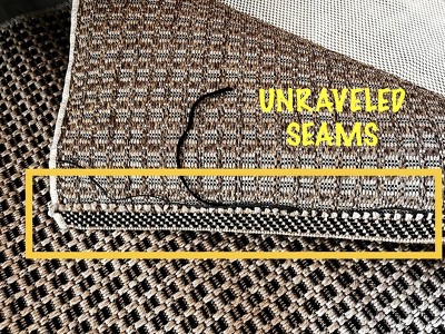 Two ends of the rug were completely unraveled. I ended up using a hot glue gun to attempt to fix it. Disappointed in the poor quality, I'm using this inside but can't imagine having it outside exposed to the elements. Target needs to do better