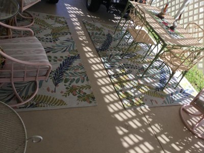 A: Hi gardener - This Botanical rug brings a lavish upgrade to your outdoor space. The care instructions for this rug: Hose clean with water. We hope this helps. –Terra
