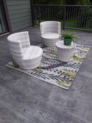 A: Hi Rebecca - Thanks for checking out our chic Threshold™ outdoor rug collection. The rug features a latex backing that helps grip the ground to prevent slipping and the care instructions recommend using a hose to clean. Check out some of our guest reviews for further insight. Happy shopping! - Taylor