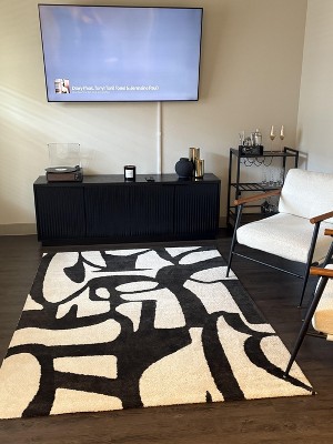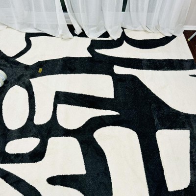 This rug is a stylish addition to any living space, offering a modern look with its abstract design and soft texture. Guests appreciate its versatility, as it complements various decor styles while being easy to clean. However, some have noted that the black color may appear faded rather than rich, and the rug can attract pet hair. Overall, it provides a great aesthetic and comfort for any room.