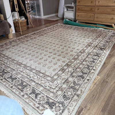 Bring artisanal appeal to your floor with the Hand-Knotted Rug from Threshold™ designed with Studio McGee. Crafted from a soft fabric with knotted weave, this handmade rug is adorned with paisley motifs in earthy shades on an ivory-color background, along with an intricately patterned border and tasseled ends, to give your indoor space a new look. The rectangular area rug also features a low-pile construction, making it a versatile piece that's easy to place in your living room or entryway. Simply toss it on the floor to liven up your decor with a timeless, functional accent.