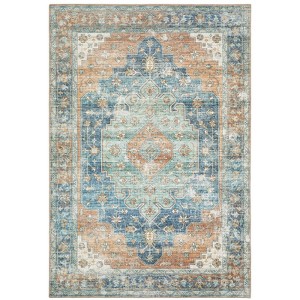 Marcel Bohemian Border Medallion Area Rug Orange/Blue - Captiv8e Designs
