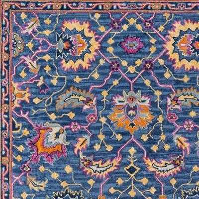 The saturated shades of this decorative area rug reinvent the classic Persian carpet in a vivid color palette. The captivating assortment offers a modern interpretation of traditional rug motifs, as vibrant pink, orange, blue and yellow tones form flowers, vines, palmettes and medallions in colors beautiful and bold. Hand tufted from 100% natural wool, each floorcovering makes a dramatic design statement as a focal point on floors throughout the home.