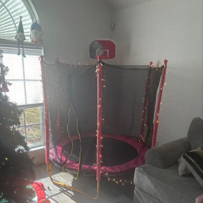 I just had to share my experience with the 5.5FT Mini Trampoline. It's been an absolute delight for my family, and I couldn't be happier with this purchase. It has quickly become their favorite playtime activity. Not only are they having a blast, but I'm also incredibly satisfied with this purchase. The enclosure net adds an extra layer of safety, allowing me to relax while my children bounce away to their heart's content. The addition of the basketball hoop and ball is a fantastic bonus, turning our trampoline into a mini basketball court. This trampoline is perfect for both indoor and outdoor use, providing entertainment year-round. It's incredibly sturdy, with a 220 lbs weight capacity, ensuring that it will last as my kids grow. The pink color is delightful, and the design is not only fun but also functional. I highly recommend this mini trampoline as a wonderful gift for boys and girls. It's been a huge hit in our household!
