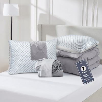 Includes: 1 Fitted Sheet, 1 Flat Sheet, 2 Pillowcases, Comforter