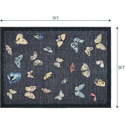 5*7FT Modern Abstract Marble Washable Rug, Soft Luxury Non-Slip Area Rug for Living Room Bedroom Kitchen Entryway Office-Black