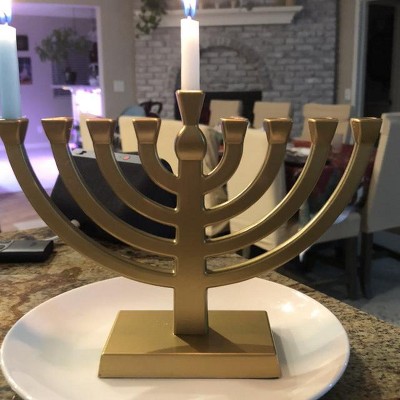 5.87"x7.75" Mini Menorah Taper Aluminum Alloy Hanukkah Candle Holder Gold - Spritz™