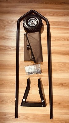 Ames 5 Cu. Ft. foldable wheelbarrow. It has a canvas tray that can hold up to 50 pounds. The tray is 6 inches deep. It features foldable handles for easy storage and has cushion grips. A solid, never-flat tire ensures that it is always ready to use. You never have to look for a pump and fill the tire again! The top flap that is firmly attached with velcro and a strap on the sides. The flap can be “released” and folded down to enable you to rake leaves and debris into the wheelbarrow. It’s easy to empty the wheelbarrow by pouring debris out from the handle or wheel end. It can be easily transformed from wheelbarrow to storage by simply removing the safety pin. Unfortunately, the safety pin can be misplaced as it is not attached to the wheelbarrow. I made a lanyard to rectify this problem so the safety pin always stays with the wheelbarrow. Assembly is required. The manufacturer recommends a 1/2 in wrench for assembly. I used a crescent wrench and it worked just fine. Assembly is simple as there are only a few bolts to tighten. Assembly took around 10 minutes. This is perfect for the homeowner as an “only” wheelbarrow or as a second lightweight one. The metal handles make it great for moving a couple of bags of mulch, raking leaves, picking up debris or trash. It’s very convenient for transportation or storage as it folds up nicely and takes up a lot less room than a traditional wheelbarrow. You will be happy with the features and benefits of this wheelbarrow. I can definitely see my neighbors wanting to borrow this. Lol