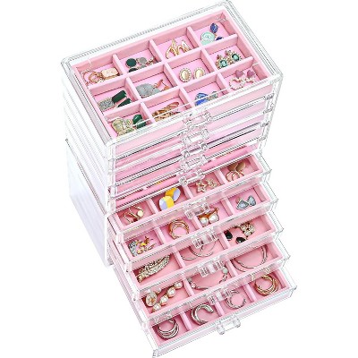 5 Layer Drawers: Removable and clear drawers design makes it easy to find your items, you can take small earrings you need easily by pull out the drawers