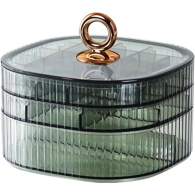 - Stackable & Compact - Size: 9.25 x 5.31 x 6.7"; Doesn't take up a lot of space, but has enough compartments for most of your jewelry