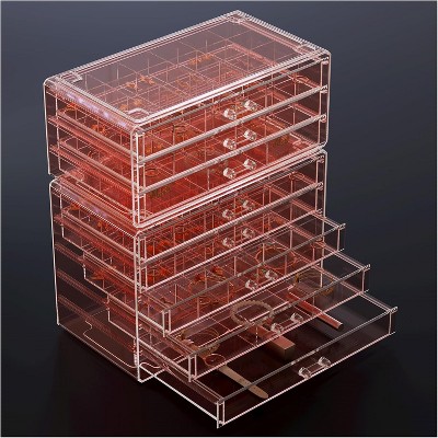 [Sturdy & Long-lasting] 0.17 inch tough acrylic in the outside, including shell and drawers. Soft velvet-like fabric wrapped MDF board in the internal tray. Drawers slide open smoothly and handles are easy to grip