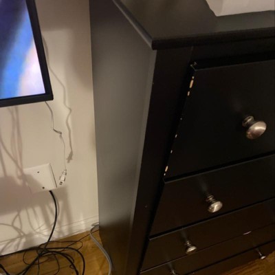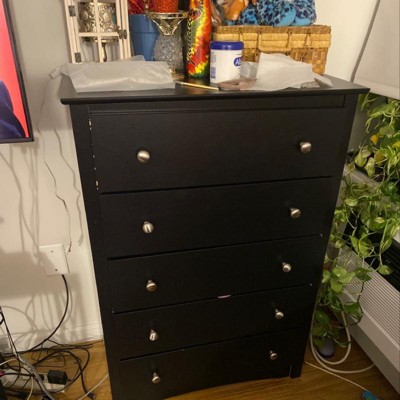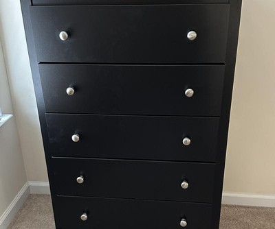 Prepac 5 Drawer Dresser Black: Transitional Style, Satin Finish, Nickel Hardware, Bedroom Storage