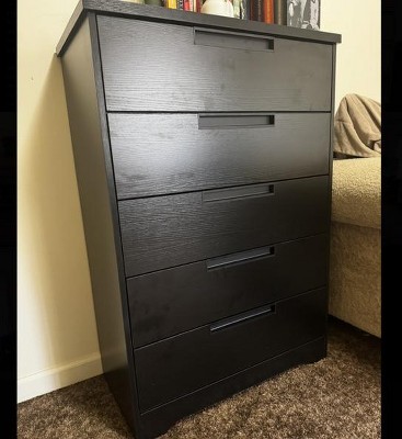 I have a strong feeling this is constantly marked down from $500 because of quality. This is not a $500 dresser, however I paid the discounted price so I can’t be that upset. Pros: Cheap. Works for now. Heavy. Cons: Took about 6+ hours to assemble. Some of the pre-drilled holes were missing for the flimsy backing. Wobbles. Dents very easily. Shows all fingerprints.