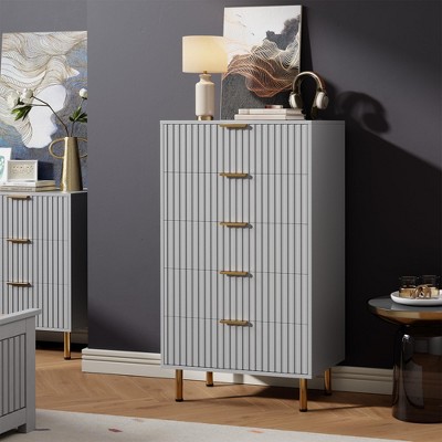 5 Drawers Dresser for Bedroom, 47" Tall Dresser Chest of Drawers with Side Hooks, Fabric Closet Dresser Tower Furniture