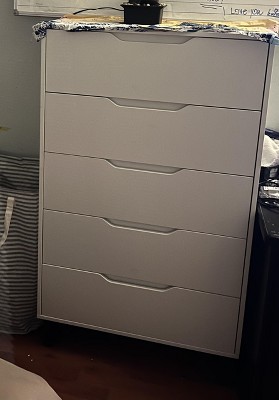 it looks very nice BUT. the drawers are very short of the back of the dresser, probably 3-5 inches. additionally, the drawers have to stay about 1/3 empty in order to smoothly open and close without the middle boards catching the clothes. i’m not returning it only because it fits nicely in the spot i need and it took hours to put together. if i had realized how small the drawers were, i would have returned it prior to putting it together.