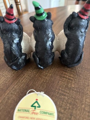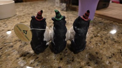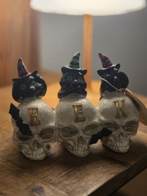 [This review was collected as part of a promotion.] This cute little decoration is the perfect little addition to your Halloween setup. It's small enough to fit on your end table or on a windowsill to add a little touch of cuteness to all the scary things. The paint job is a little messy and looks like someone unskilled painted it, but not messy enough to ruin the appeal, that's why it lost 1 star. The three little cats are in the hear no evil, see no evil, speak no evil arrangement wearing cute little witch hats sitting atop three little skulls with bats. Overall, I would say it's a great little decoration to add a little fun to your home.