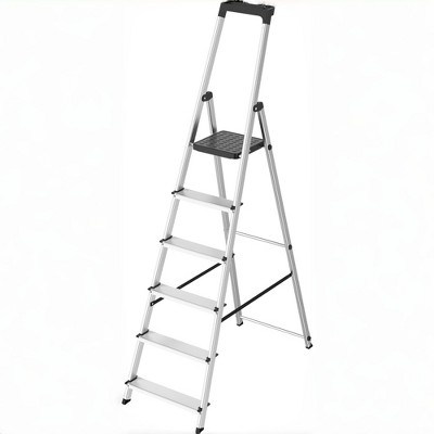 5 Folding Step Ladder - Steel Step Stool for Adults Portable Steel Ladder with Anti-Slip Wide Pedals, Safety Lock & Handrail, Multi-Purpose Space