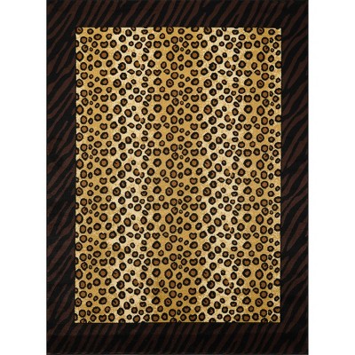 This animal print area rug measures 5'3" x 7'3", in multi, featuring wild prints like zebra and leopard. Made from 100% polypropylene and jute backing, it has a 0.39¡± pile height. Kid and pet friendly, stain resistant, easy to maintain.