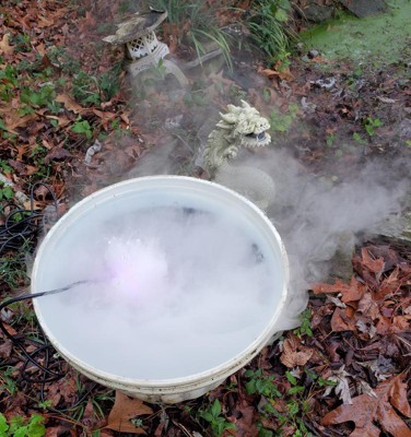 [This review was collected as part of a promotion.] This pond fogger with led lights is amazing, so easy to set up and use! It puts out a lot of fog and can fill an area easily and looks super neat. Also love that it comes with the floating ring so if you have a deeper pond or water area. A plus also is for Halloween it looks awesome for like a witches brew decoration.