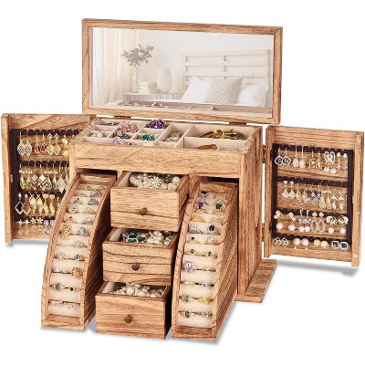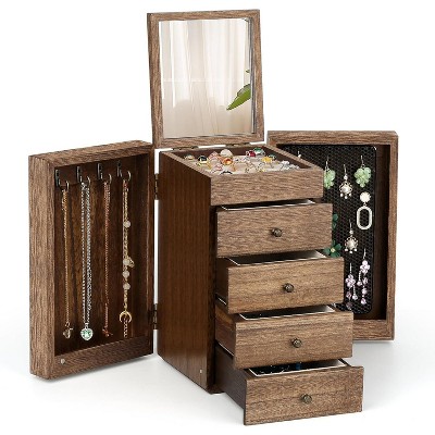 - 5-Layer Jewelry Box Storage with Thoughtful Layout: This large-capacity jewelry box includes 4 velvet-lined drawers of varied sizes to neatly organize your rings, earrings, bracelets, and accessories. The bottom drawer offers extra space for watches or bulkier items.DIMENSIONS: 7.4"D x 10.2"W x 11.3"H