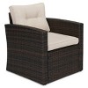- Durable Wicker: Handwoven brown all-weather rattan withstands outdoor conditions.