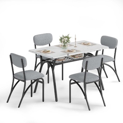 5-Piece Dining Set for Small Spaces with Rectangular Table, Built-In Storage Shelf, 4 Luxury Velvet Chairs, Scratch-Resistant Surface, Space-Saving