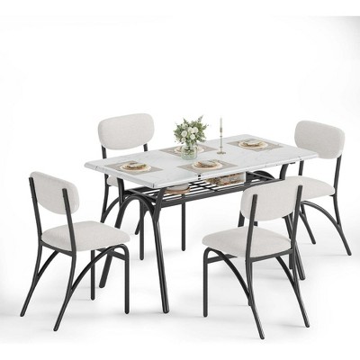 5-Piece Dining Set for Small Spaces with Rectangular Table, Built-In Storage Shelf, 4 Luxury Velvet Chairs, Scratch-Resistant Surface, Space-Saving