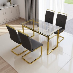 - 6. The smooth surface of the glass tabletop is easy to clean, ensuring hassle-free maintenance for busy households. Its sturdy construction and robust metal legs offer stability and support, ensuring a safe and secure dining experience.