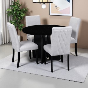 - 5-PIECE ROUND DINING SET: Includes 1 dining table and 4 upholstered chairs, seating up to 4 people. Perfect for dinners with friends or casual breakfasts.