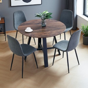 5-Piece Dining Set with Round Table and Linen Fabric Chairs - 2 of 45-Piece Dining Set with Round Table and Linen Fabric Chairs - 3 of 45-Piece Dining Set with Round Table and Linen Fabric Chairs - 4 of 4